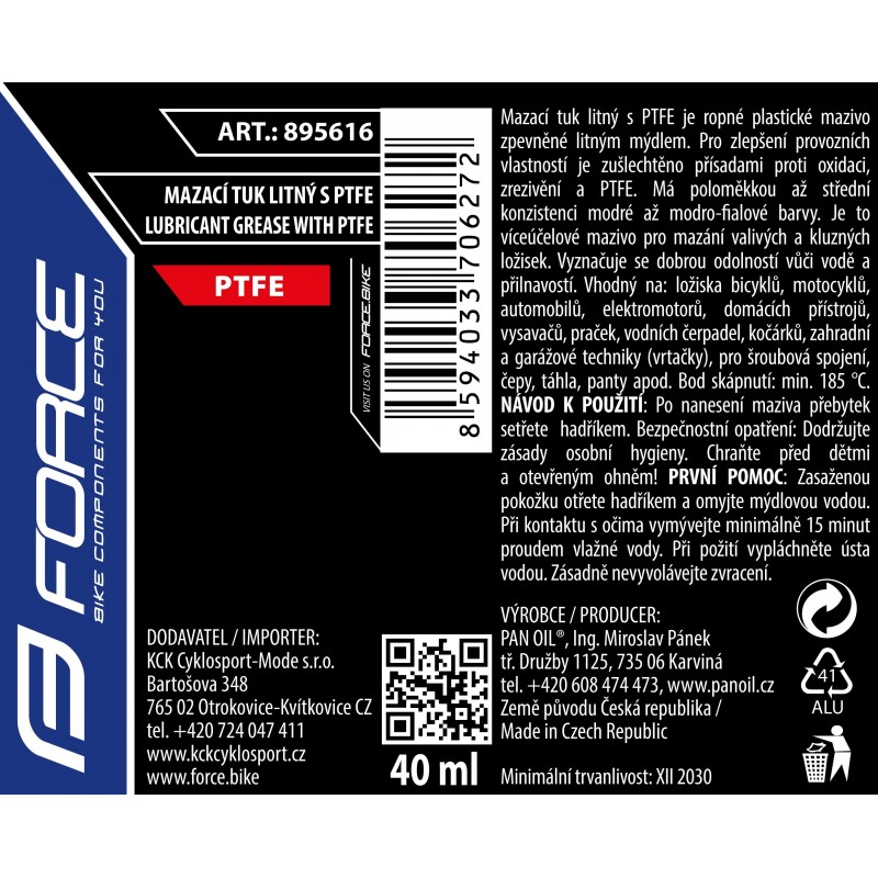 Mazivo-tuba FORCE mazací tuk litný s PTFE, 40ml