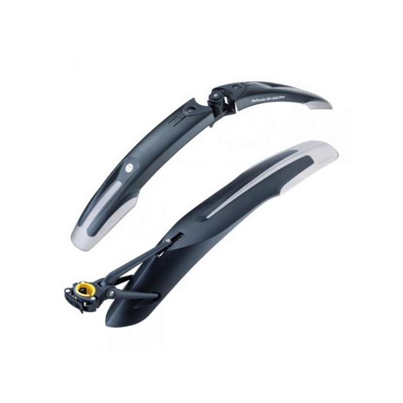 Set blatníků na horské kolo velikosti 27,5" tvoří DeFender™ M1 a XC11. Blatníky Vám nabízí systém rychlé manipulace a sundaní blatníků je tak otázkou několika málo vteřin. Blatníky jsou vyrobeny z vysoce odolného plastu, kdy spodní díl blatníků má leštěný povrch, který zabraňuje usazování nečistot. Zadní blatník XC11 vyniká jedinečným polohováním do optimální pozice a nabízí tak vysokou ochranu proti vodě i blátu.